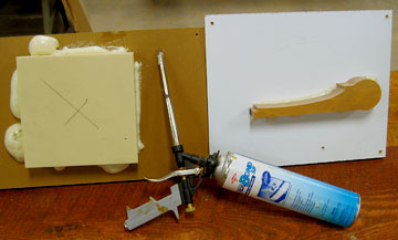 The photos shows our favorite foam adhesive and the despencer. It's from Deman Products. The can has lasted me about a year. It costs about $15.00.