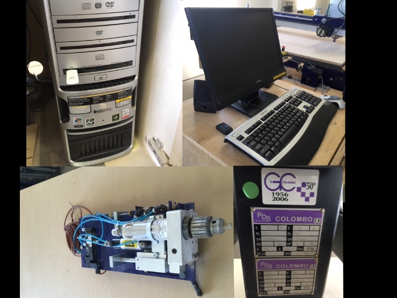 PRT Alpha with upgrades. 4th axis, Hardened rails, remote switches, upgraded Z axis and motor, with 5 hp colombo spindle. Limit switches on x,y and z axis. Delta VFD drive. Also has table upgraded table like newer PRS tables. Includes air drill digitizing probe and Dell computer. Table is zoned for 6 vacuum zones with blade valve shut offs.