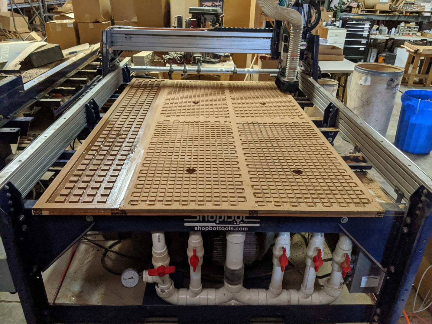 PRSalpha 96-60-6 ATC 3ph with 10HP Becker Pump and ShopBot Custom Table. Table has forklift ports built into it for ease of transport.