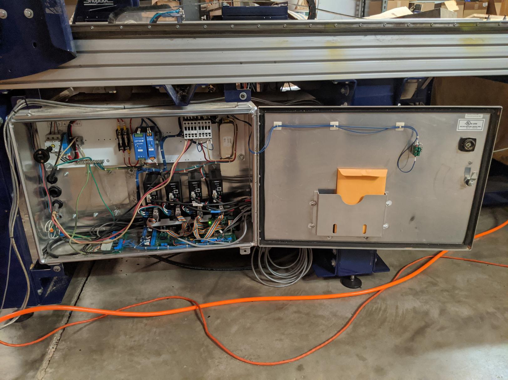 This machine is a 2014’ trade show model that I purchased from ShopBot. The table was a prototype to see how well the machines could be pre-assembled and delivered to new customers. This machine is turn key ready. Becker Pump is mounted under the table atop forklift ports and fully plumbed to newly upgraded 5 zone vac system and spoil board. All you need is 110V and 230V 3Ph sources and an air supply and you’re up and running. Truly plug and play.