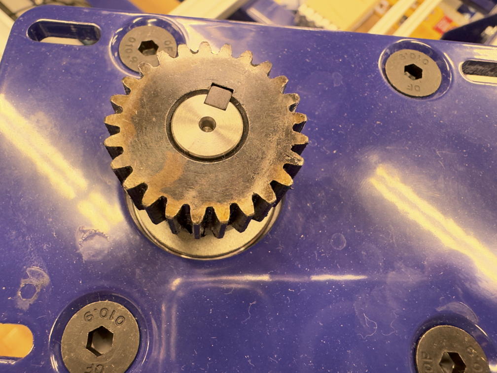 I need a pair of pinion gears to match those on the long (X) axis of my PRSAlpha, but with a 1/4" bore instead of whatever the stock ones have. I'm constructing a second, lightweight gantry to carry some experimental tools, and I want to use the existing drive system (V-wheel track, rack & pinion drive) on that axis (the stock gantry will, of course, be parked out of the way while mine is in use). My new gantry uses much smaller NEMA 23 steppers that have 1/4" shafts., and all of the motors (X, Y, and Z) will be run by a simple, independent controller instead of the ShopBot's controller. The problem is, I know next to nothing about gears, and despite attempts to measure the existing ones I have had no luck finding any that mesh smoothly with the ShopBot's gear rack.