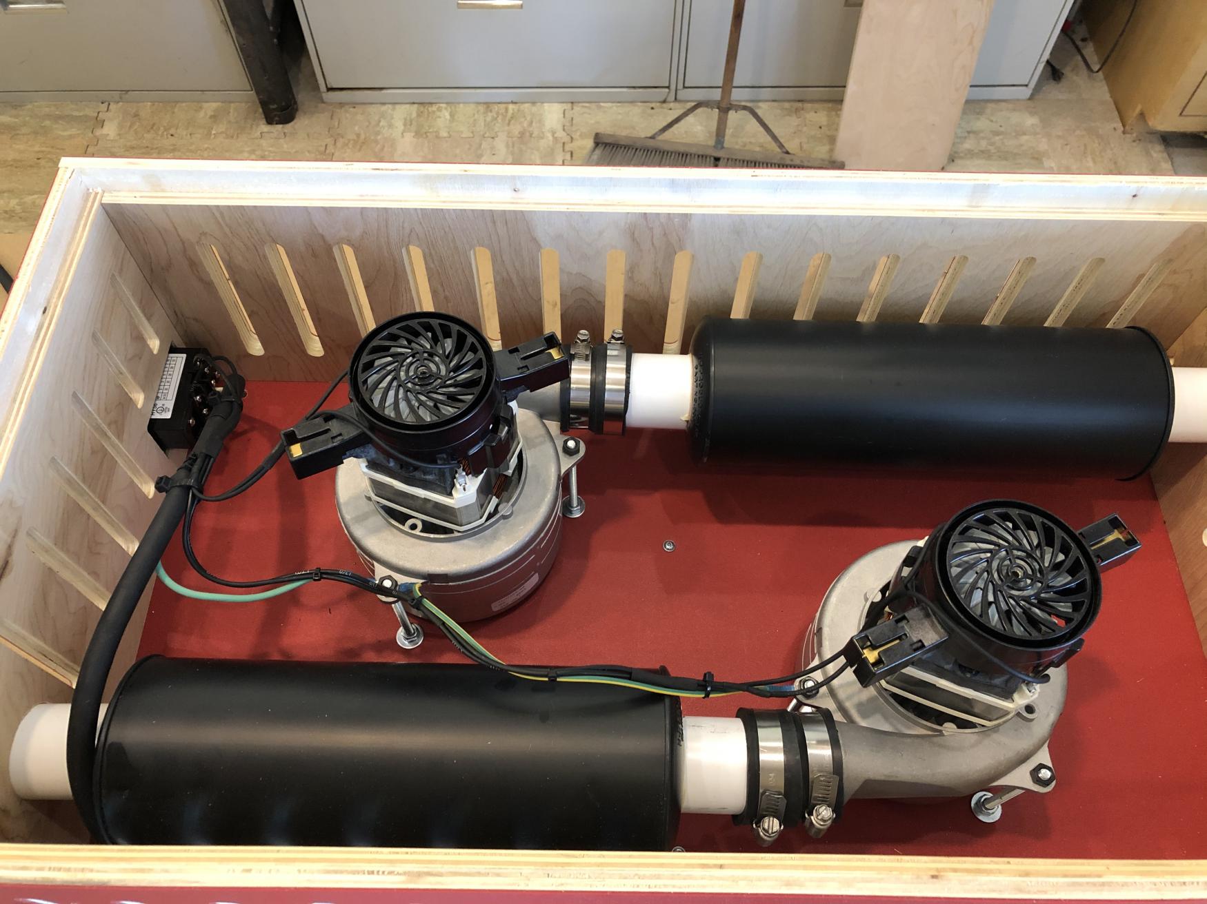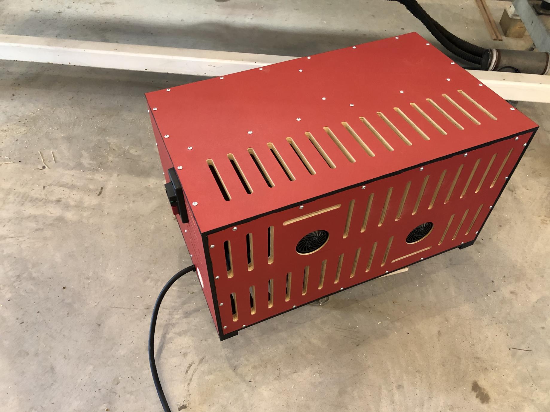 Yes. I finished that one up today and am getting it under it's intended machine. Vents to help the motors cool, but not open to where someone can touch the wires. Opposing motors to give room for the mufflers each way and keep the box small. The plywood has an abs on one side. It came from a friend of mine that makes cases for music and oilfield equipment.