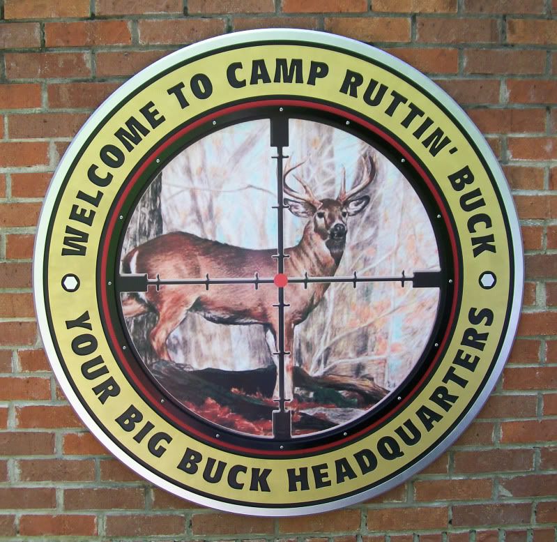 I remember that sign when you first made that...Follow my thinking here...how i see your sign would be to keep the center with the deer static and the outside ring of the scope and name let that revolve.